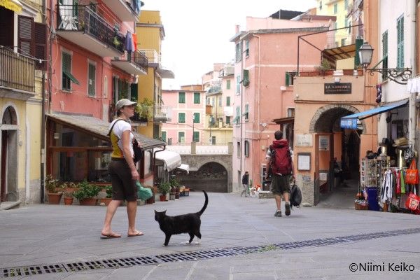 リオマッジョーレの目抜き通りを歩いていると、目の前を猫が横切りました。