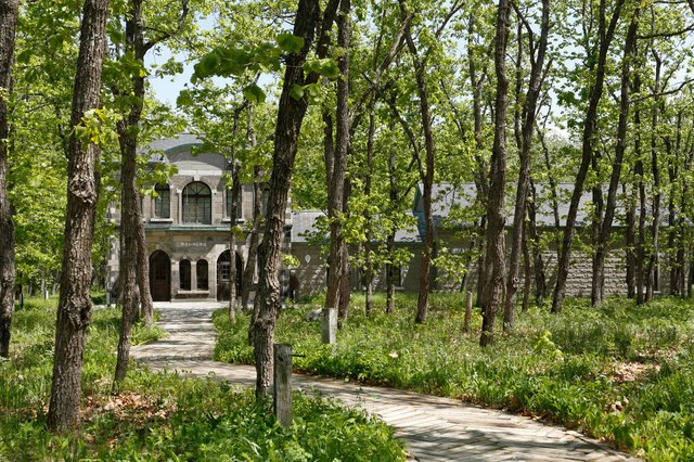 四季折々の山野草が咲く園内にクロアチアの古民家を移築したギャラリーが点在する「六花の森」。