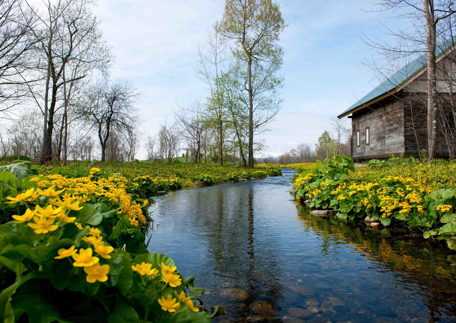 約10ヘクタールという広大なエリアは北の国の自然がそのまま活かされていて、水量豊かな小川が快いせせらぎを響かせて流れ、その脇には可憐な花々が咲き誇る。明るく気持ちのいい遊歩道を散策すれば、心和む雰囲気におのずと心と体の緊張がほぐれていく――そんな絶妙の環境に恵まれているのだ。