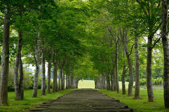 六花の森から4キロメートルほど離れた中札内美術村のほうは、六花の森とはまた違った趣がある。カシワの深い林が落ち着きある雰囲気をつくり、抽象的な言い方になるが、「大人」な印象がある。開放的な六花の森、内省的な中札内美術村という言い方もできるように思う。