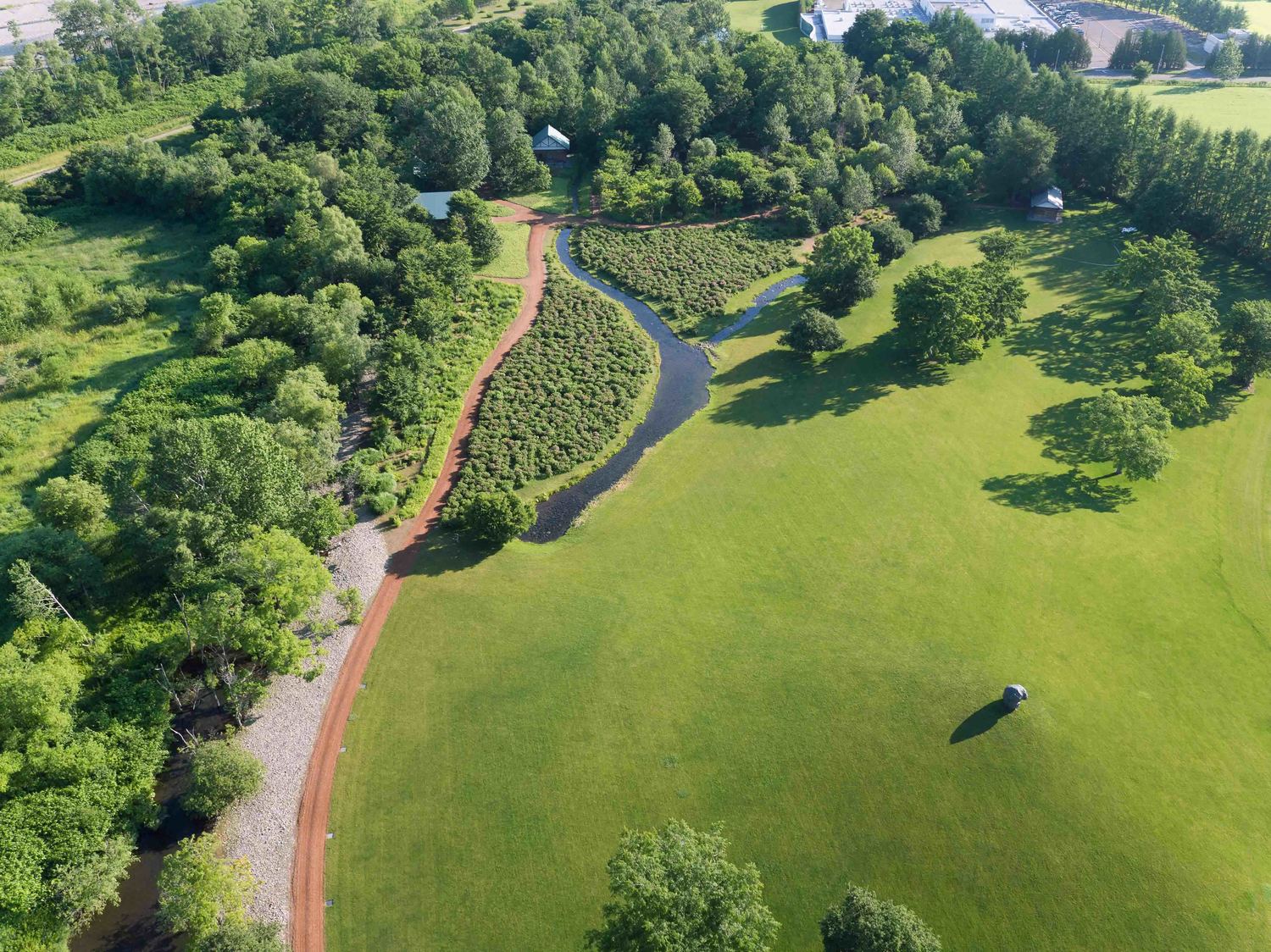 まずは六花の森。遠くに日高山脈を望み、札内川が流れるすぐ近くにある。ここをひと言で言い表すのはすごく難しい。月並みな言い方をすれば「自然とアートが融合した芸術公園」といったことになるかと思うが、そんな言い方では到底ここの魅力を伝えることはできない。
