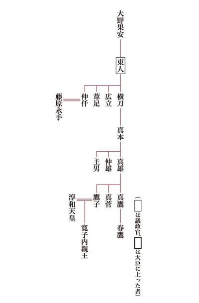 大野氏というのは、上野国山田郡大野郷を本拠とし、上毛野(かみつけの)氏と同祖を称した氏族である。壬申の乱に際して近江朝廷の将に大野果安(はたやす)がおり、その子の東人(あずまひと)は神亀元年(七二四)以降の蝦夷征伐や天平十二年(七四〇)の藤原広嗣(ひろつぐ)の乱の討伐に功があり、参議に上った。
