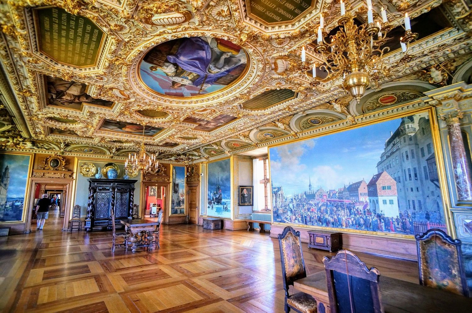 フレデリクスボー城の最大の見どころは、「爵位のチャペル」と呼ばれる荘厳な教会だ。非常に高い天井と煌びやかな内装は、ため息が出るような美しさである。教会は、クリスチャン4世の時代の装飾が残るほどの伝統をもち、1859年の大火事もほぼ無傷でくぐり抜けている。