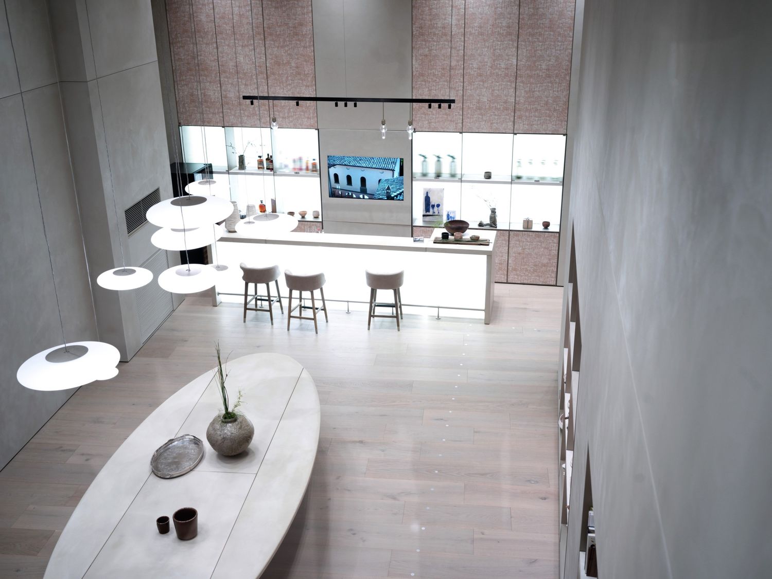 その土地にずっと存在していた要素に、クチネリの美学を融合させることで、両者の個性をより輝かせる。ローカルへの敬意、ローカルとの融合というクチネリ的発想は、建物のファサードだけではなく、新店舗の中、いたるところに見られる。