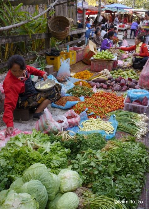 早朝、朝市に向かうと、すでに路上には露店が立ち並び、にぎわっていました。
