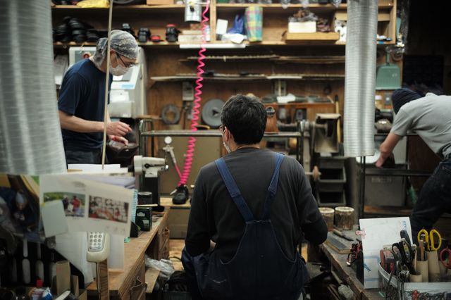 東十条にある「ゴロー」の工場。2階建てで、1階には底付け用の機械などが置かれている