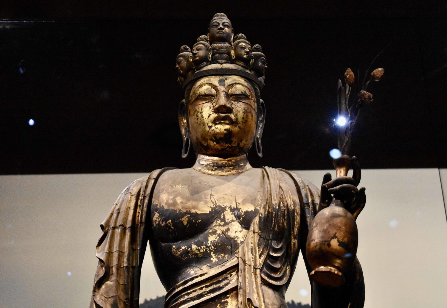 その名の通り、頭上には11の面があったが、現在は仏面1、菩薩面2、怒った面3、牙を出した面2が残る。