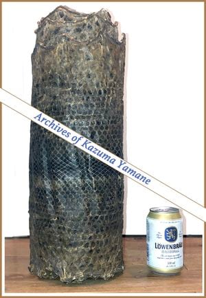 とはいえ、安心してほしい。それはブラジルのアマゾン地方産のオオアナコンダから剥(は)いだ全身の「皮」で、生きた大蛇ではないからだ。