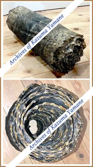 久々に引っ張り出したオオアナコンダの皮。巻物のように巻いて保存してあった。(撮影・山根一眞)