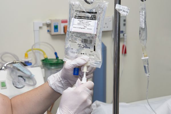 通常の点滴はパックだが、北朝鮮では洗浄したビール瓶を用いた(写真:Science Photo Library/アフロ)