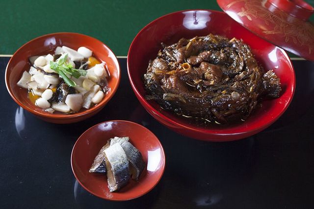 漆器に盛られた会津の郷土料理は地酒とあわせて楽しみたい。