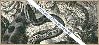 このカラープリントを持参した知人は、「呑まれたのは歯医者か漁師(釣り人の誤り)だが、弓を引いたまま呑まれたインディオの子供という話もあります」と語っていた。弓を引いたままのインディオの子供を丸呑みとなると、空想としても無理があるが、大蛇の面白ウソ話は際限がない。