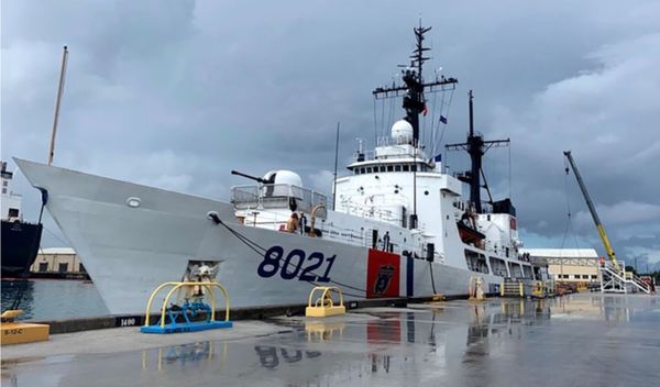 グアム島アプラハーバー米海軍基地でベトナムに向け出港準備中のハミルトン級高耐久カッター。ベトナム海上警察艦隊巡視船「CSB-8021」として就役する(写真:米沿岸警備隊)