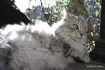 こちらはイタリアの大都市ミラノの猫。こういう鈍色(にびいろ)と白の毛並みは珍しいです。りっぱな体格と、ちょっとすっとんきょうな目の表情というアンバランスさが魅力です。