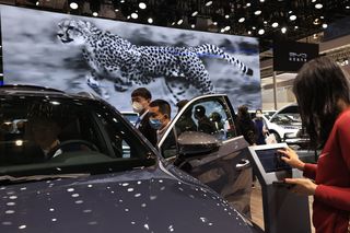 上海モーターショー2021のテスラのブース(2021年4月20日、写真:ロイター/アフロ)
