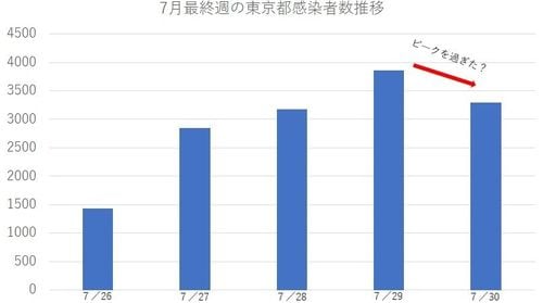 7月29日をピークに、30日は減っていますね。今回の新型コロナウイルス感染症もやっと流行のピークを超えたのでしょうか?