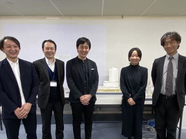 設計を担当する大成建設設計本部建築設計第五部の皆さん。左から生出健太郎アーキテクト、西尾吉貴シニア・アーキテクト、麻田北斗プロジェクト・アーキテクト、滝村菜香氏、輿石秀人設計室長