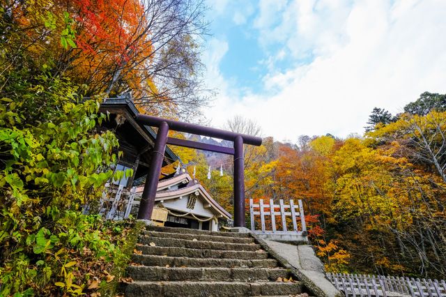 鳥居の奥に見えるのが奥社。紅葉の時期もおすすめ