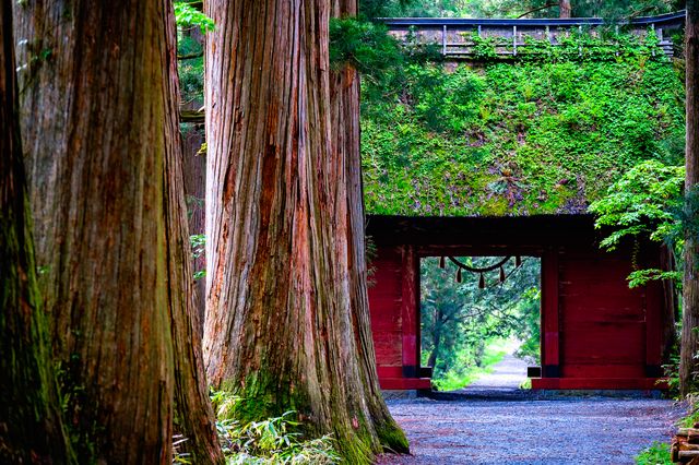最後に戸隠巡りの中でもとっておきの御神域、奥社に向かう。他の社は車で前まで行けるが、こちらだけは、駐車場に車を止めて40分ほど参道を歩かねばならない。しかし、その参道が実に素晴らしいのだ。天に向かってまっすぐ伸びる杉並木が延々と続き、両脇には、深い森がある。さまざまな花も咲き、初夏には水芭蕉も見られる。何種類もの鳥の声も響き、神とは今ここにある自然のことだと実感できる。参道の中ほどには赤い随神門がある。杉並木をバックにしたこの門はたいへんフォトジェニックで、観光ポスターにもよく使われる。