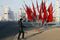 刺さりすぎの北朝鮮国旗(写真:AP/アフロ)