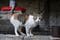 東欧ブルガリアの首都ソフィアに、飼い猫と思われる白黒猫がいました。すると、三毛猫が白黒猫との間に割って入ってきました。お母さん猫が子どもをかばったのかもしれません。