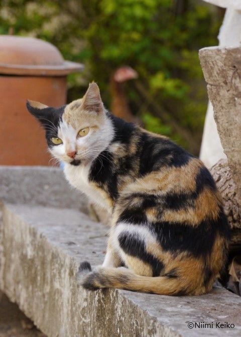 リエカは、クロアチア北西部に位置する港湾都市です。海を見下ろせる高台で出会ったのは、黒色が多くてインパクトある顔つきの三毛でした。