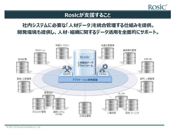 インフォテクノスコンサルティングは2000年の設立当初より、総合的な人材マネジメント支援のシステムを提供してきたが、それを大幅に発展・拡張させた「Rosic人材データ統合プラットフォーム」を2020年にリリースした。