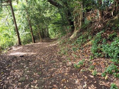 衣笠城跡の東木戸推定地付近。画面奥のあたりで三浦義澄や佐原義連が防備を固めており、写真のあたりで激戦となったはずだ。