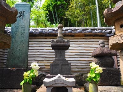満昌寺にある三浦義明墓所伝承地。衣笠城の東に位置する満昌寺は、三浦義明・義澄らの屋敷だったと言われている。