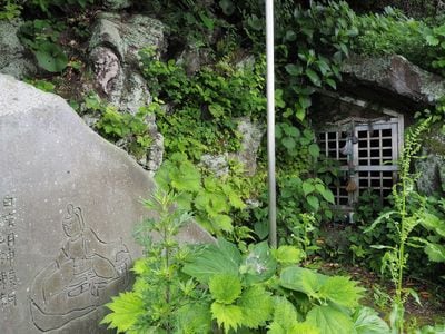 真鶴半島にある「鵐の窟(しとどのいわや)」伝承地。頼朝一行が潜んだとの伝説のある場所は、湯河原から真鶴一帯に複数箇所ある。