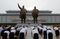 平壌の万寿台大記念碑。金日成主席と金正日総書記のブロンズ像が飾られている(写真:AP/アフロ)
