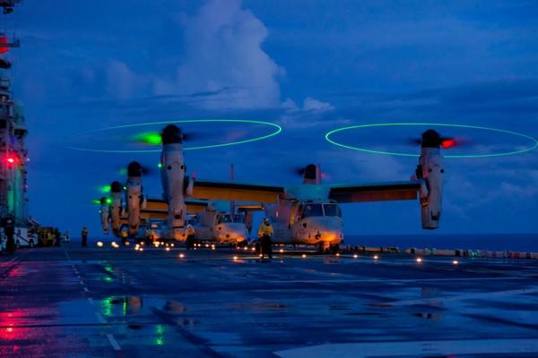 中国が台湾侵攻をしようとすれば、太平洋などに展開する米軍とも対峙しなければならない(写真はフィリピン海で発着訓練する米海兵隊のオスプレイ、8月17日、米海軍のサイトより)