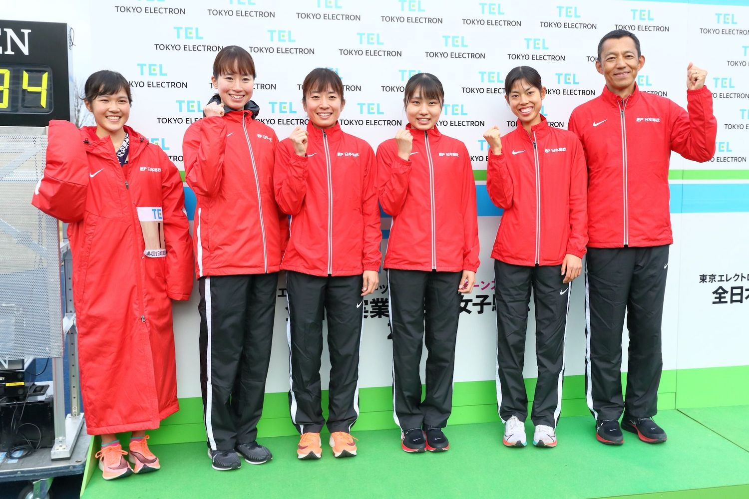 2020年11月22日、全日本実業団対抗女子駅伝で日本郵政が優勝(廣中は右から2番目)。写真=西村尚己/アフロスポーツ