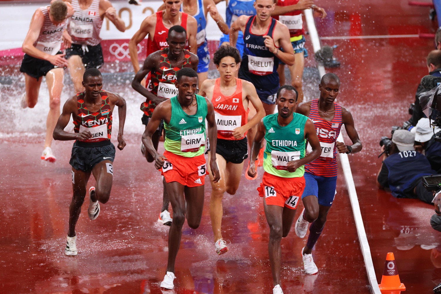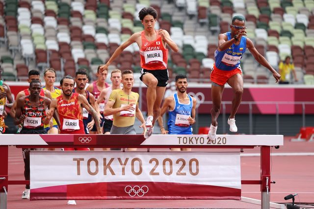2021年8月2日、東京五輪、陸上男子3000m障害決勝での三浦龍司。写真=YUTAKA/アフロスポーツ