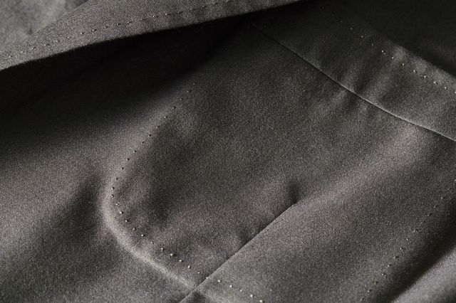 普段の〝ブリオーニ〟なら生地のエッジギリギリにしか入れない「コバステッチ」を、ちょっと目立つ位置に入れるなど、よりオーバースペックというか嗜好性をアピールしているようだ。そのステッチ数はなんと6000針! ジャンルとしてはアンコンジャケットなのだが、あまりに巷のそれとはクオリティが段違いすぎて、同列に語るのには躊躇してしまう。