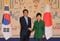 日韓首脳会談を前に握手を交わす安倍晋三元首相と朴槿恵前大統領(写真:Yonhap/アフロ)