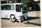 事故直後の様子。スクールバスの右前方に衝突した白バイが大破している(片岡さん提供)