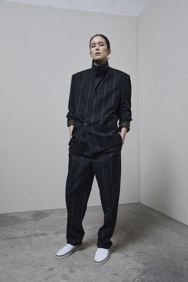 今回のコレクションに合わせて発表されたオフィシャルルック。タートルネックやスニーカーと合わせた、ストリートっぽい着崩しが似合う1着です
