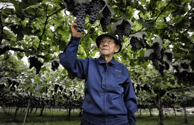 塩尻「桔梗ヶ原メルロー」を生み出した伝説のひと、林農園/五一わいん代表の林幹雄さん。1929(昭和4)年塩尻生まれ。父・五一氏と共に林農園で戦後間もなくよりワインづくりに携わる。メルローを見つめる目は優しい
