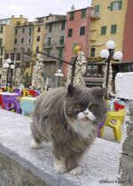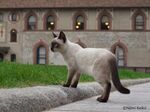 レマン湖のスイス側にあるにニヨン城を背景にポーズをとってくれました。この景色を自分のものとしている三毛ちゃん。「世が世なら、わらわはこの城のお姫さま。くるしゅうない」と言っているような物腰でした。