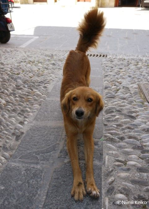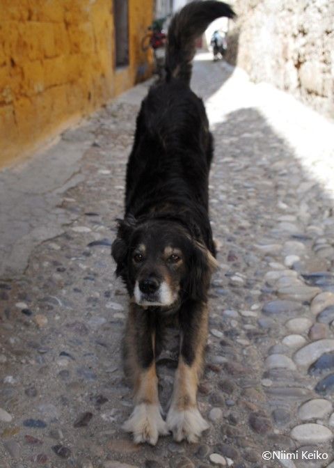 エーゲ海東部にあるギリシャのロドス島(ロードス島)、旧市街のほとんどの道は、道幅が狭いことなどもあり自動車が通りません。そのため、猫だけでなく、犬も路地を自由に歩き回り、仲間といっしょに遊んでいます。