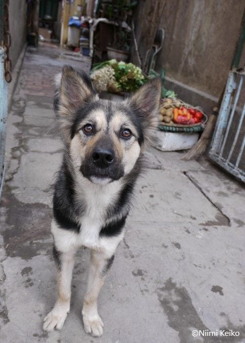 大きな家の玄関でたたずんでいました。写真を撮っていい?とアイコンタクトをとると、「きをつけ」のように姿勢を正したので、身体全体が少し縦に伸びました。