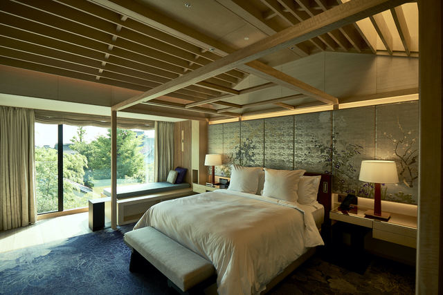 フォーシーズンズホテル京都ではすべての客室、スイート、パブリックエリアにテキスタイルを配置