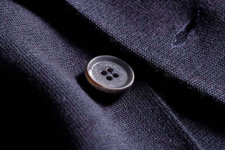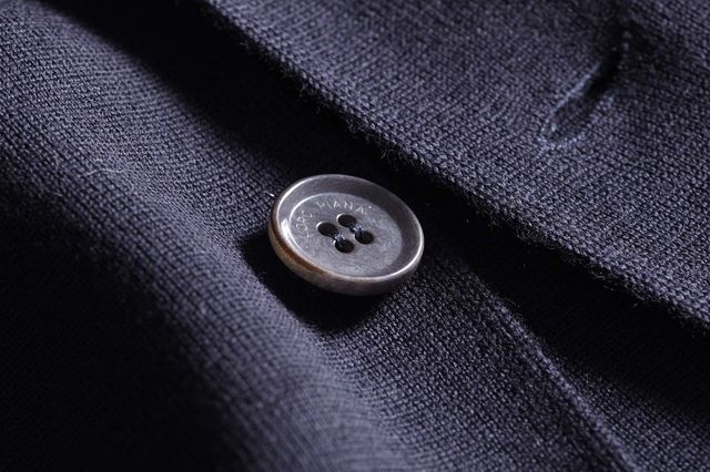 ロロ・ピアーナのニットジャケットは高品位の素材で出来ています。スーパー160’s (直径15.5ミクロンの極細)のメリノウールを原材料にした梳毛(そもう)糸は、毛足の長い羊毛を引き揃えて、短い羊毛を取り除き紡績(繊維を糸の状態に)しています。梳毛糸は繊度(糸の太さ)が均一でうつくしく、糸の表面は滑らかで光たくがある。糸の撚りは強めですから、どの部分もおなじテンションで「もっさり感」はありません。シワにもなりません。シャープな印象をパートナーにあたえます