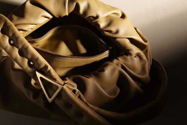 〝ボッテガ・ヴェネタ〟が誇るしなやかなラムレザー(羊革)を使った、クロスボディバッグ。アイコンと呼べるのは、ストラップに配されたトライアングルモチーフのバックルだけ。この潔いミニマリズムに、新しい感性をもつ世界中の男女が魅せられている