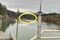 最もよく見える場所で撮影したものが、本記事冒頭の写真である。鋼鉄製の橋は途中から橋桁が滑り台のように傾いている。しかも先端は向こう岸(左岸)に届いていない。