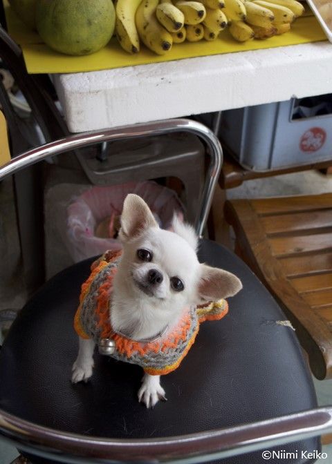 副業として軒先で果物販売もしていて、リリーは果物部を担当。お客さんが果物を見はじめると、吠えて来客を知らせます。