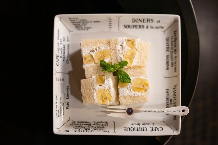 生クリームとバナナのシンプルな具材だからこそ、スタイリッシュなフルーツサンド650円