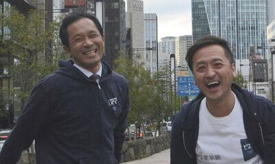 ビジネスマーケットの表一剛社長(右)と、社外取締役の癸生川(けぶかわ)氏(左)。会社はモノのように売買できない