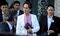 2019年12月、ハーグの国際司法裁判所で行われたロヒンギャ虐殺をめぐる国際裁判に出廷したアウン・サン・スー・チーさんを警護するチェリー・テットさん(右端。写真:ロイター/アフロ)